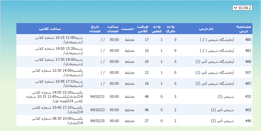 برنامه کلاسی ترم پاییز 93